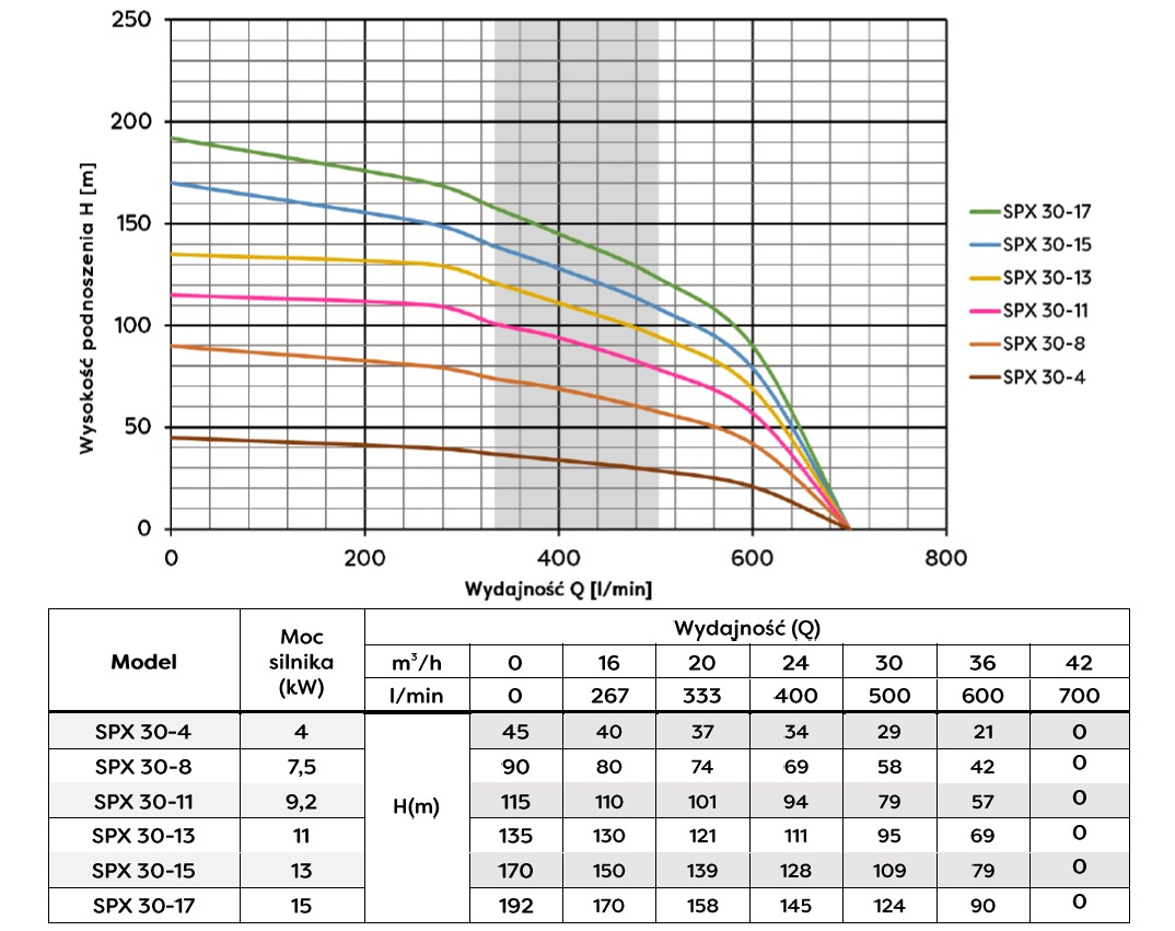 Pompy głębinowe serii SPX służą do czerpania czystej, słodkiej, zimnej wody z odwiertów głębinowych oraz innych zbiorników wodnych. Wyróżniają się wysoką sprawnością, zastosowaniem wysokiej klasy materiałów, takich jak stal nierdzewna AISI, oraz precyzyjnym wykonaniem wszystkich elementów.